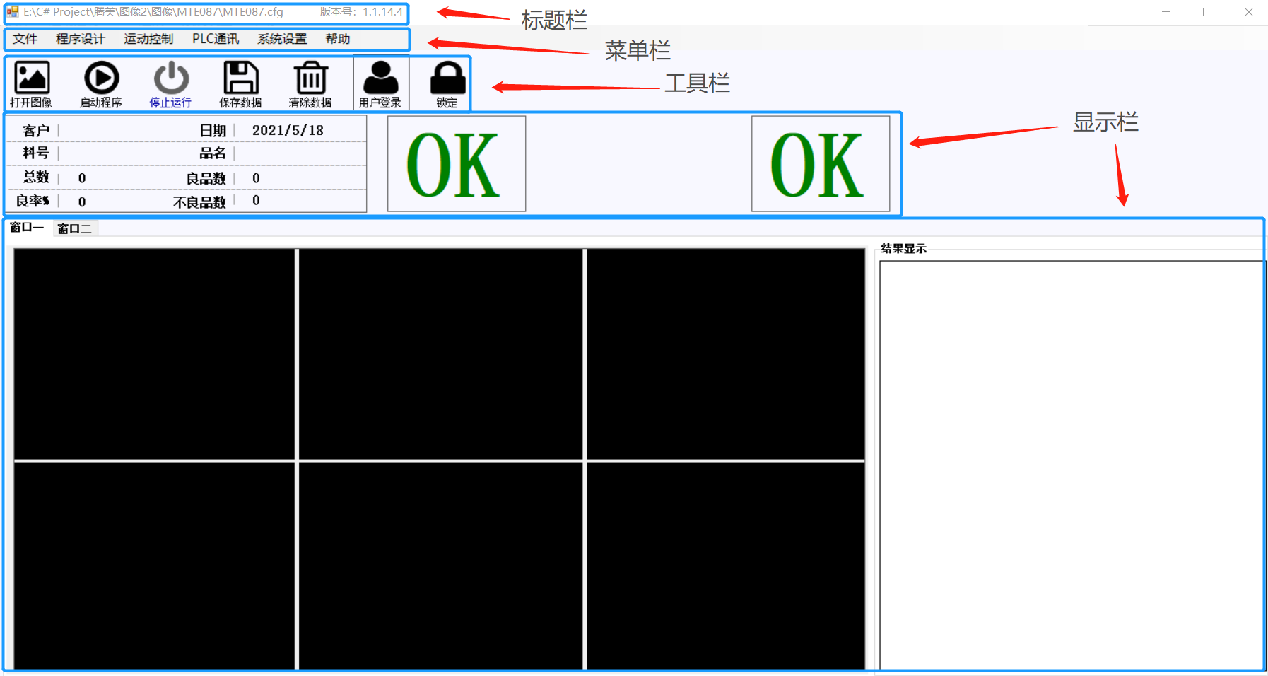 显示栏分为:图像显示,测量结果显示,总数统计,良率统计。