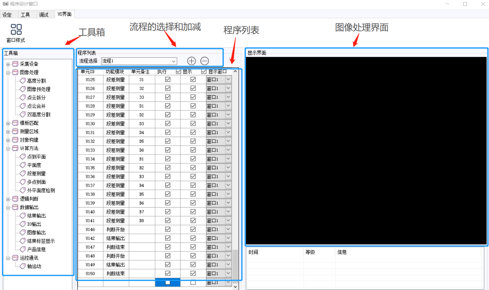 工具箱:测量工具的放置区,可以把功能模块直接拖拽到程序列表。